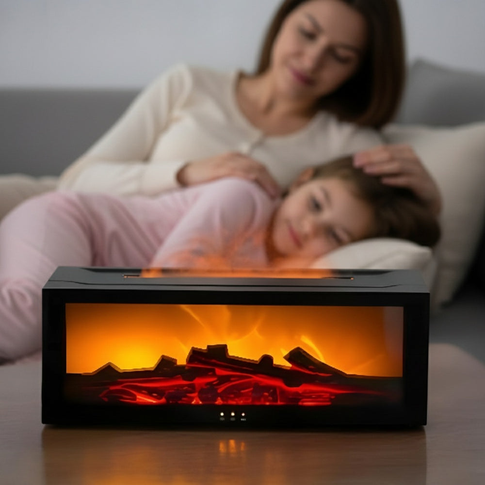 Transformez votre espace avec notre diffuseur d'arômes qui crée une ambiance chaleureuse grâce à son effet flammes réaliste et sa lumière colorée, tout en diffusant vos huiles essentielles préférées.